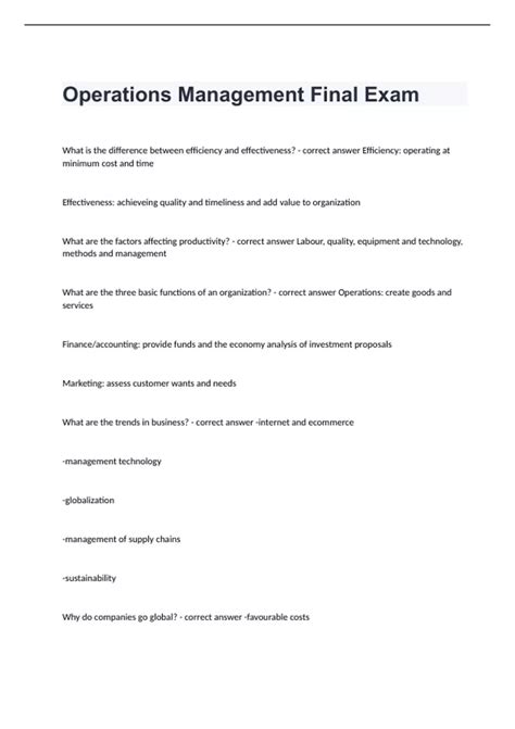 Free PDF Operations management final exam questions and answer Doc Library Genesis